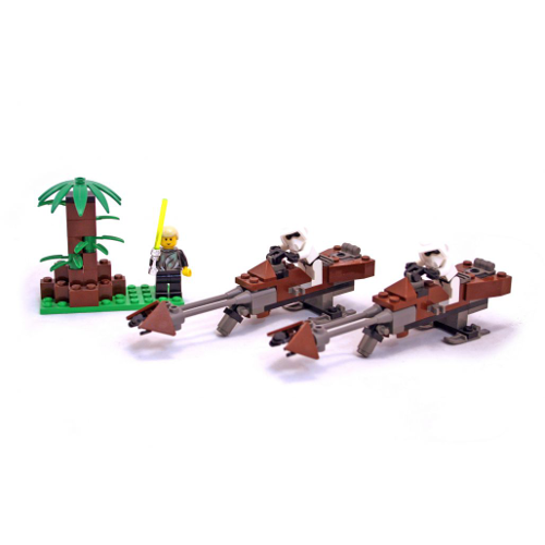 Le set 7128 - Speeder Bikes sorti en 1999 contient 2 speeders militaires, 2 Scout Troopers de l'Armée Impériale ainsi que la minifigurine de Luke Skywalker dans une tenue de camouflage. Un petit décor représentant un arbre accompagne le tout. Le contenu de la boîte s'inspire largement des scènes de poursuites sur Endor présent dans l'Episode 6 : Le Retour du Jedi. A noter : le dos de la boîte présente un set alternatif.