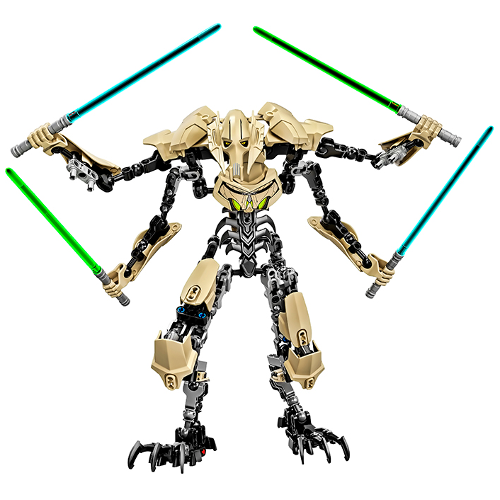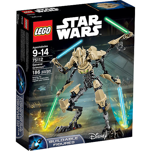 Le Général Grievous (ou Qymaen jai Sheelal de son vrai nom) est un Kaleesh devenu un cyborg à la suite de l'explosion de son vaisseau provoquée par le comte Dooku. Son corps est en trés grande partie constituée d'implants cybernétiques provenant des usines Géonosiennes. Il se bat pour la Confédération des Systémes Indépendants sous les ordres de Dooku. Il est armé de quatre sabres laser volés à des Jedis qu'il a tué. Le set 75112 est une version "Buildable figures" de ce personnage mesurant un peu plus de 30 cm de haut.