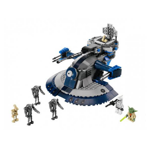 Ce char tout droit sorti de l'univers The Clone Wars me plaît bien, il est de bonne taille (bien que pas franchement à l'échelle des figurines) et permet lui aussi d'enrichir un diorama représentant une belle scène de bataille. Je lui reproche tout de même une grosse fragilité sur les deux "bras" portant les lasers de chaque côté de la tourelle. Le choix de stickers pour représenter les orifices des lances-missiles est douteux d'autant que ces derniers ont la facheuse tendance a se décoller (enfin chez moi en tout cas) c'est dommage. Cet inconvénient est largement compensé par un nombre de figurines suffisant (rare pour des sets de cette taille). Il comprend Yoda dans sa version Clone Wars accompagné par un soldat Clone, 3 supers droïdes de combat et 2 droïdes classiques (pour le poste de pilotage et la tourelle). Le petit speeder sortant de l'arrière du char ajoute de la jouabilité au set, c'est sympathique pour les enfants mais un peu sans intérêt pour les collectionneurs. C'est une constatation plus qu'un reproche cet AAT restant un jouet. A titre personnel, j'ai acheté ce set car je n'avais pas de figurine Yoda digne de ce nom dans ma collection! Mis à part ce genre de besoin trés spécifique (et hautement prioritaire bien entendu...) je pense que l'achat de ce set n'est pas une priorité, oui c'est dur je sais mais il faut parfois faire des choix!