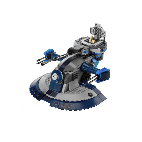 L'AAT ou Char d'Assaut Blindé en français est un véhicule terrestre utilisé par la Fédération du Commerce lors de la Guerre des Clones. Destiné aux droides, l'AAT a accompagné ces derniers sur de nombreux champs de bataille. Ses principaux atouts sont : son blindage d'une cinquantaine de centimètres, ses répulseurs qui lui permettent de circuler sur les terrains les plus accidentés, mais surtout son armement : 1 canon laser lourd monté sur la tourelle, 4 canons lasers secondaires ainsi que 6 lance-missiles. Cette force de frappe est hélas entachée par une faible vitesse (environ 55km/h) et donc une faible réactivité sur le terrain (inconvénient récurrent sur les véhicules lourds). A noter : dans cette version Lego ® le char est équipé d'une sorte de speeder sortant de l'arrière et ayant pour fonction la reconnaissance tactique. Je n'ai pas, à ce jour vu un tel équipement sur l'AAT dans la saga Star Wars.