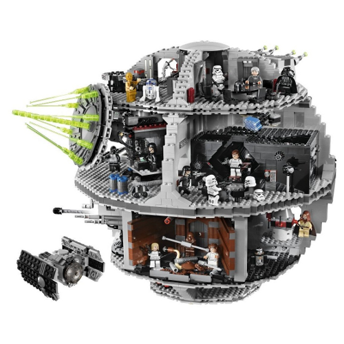 Célébre engin spatial de l'univers Star Wars, l'Etoile de la Mort est quasiment un véhicule mythique, voir une arme ultime. Construite par l'Empire afin d'asseoir sa domination galactique, c'est le plus grand vaisseau jamais construit dans tout l'univers. L'armement est bien entendu à la hauteur des ambitions de l'Empire avec le surpuissant laser capable de détruire une planète entière en un seul tir mais aussi par 15000 turbolasers lourds et 15000 turbolasers "simples"(ces chiffres sont approximatifs les sources étant un peu divergentes en la matière). La station de combat est capable d'accueillir environ 2 millions de personnes (équipage, soldats, pilotes, agents de maintenance,...). Tout comme dans les films Star Wars il existe 2 versions Lego l'une représentant l'Etoile Noire en construction et celle-ci à l'échelle des minifigs Lego représentant des passages cultes du film.