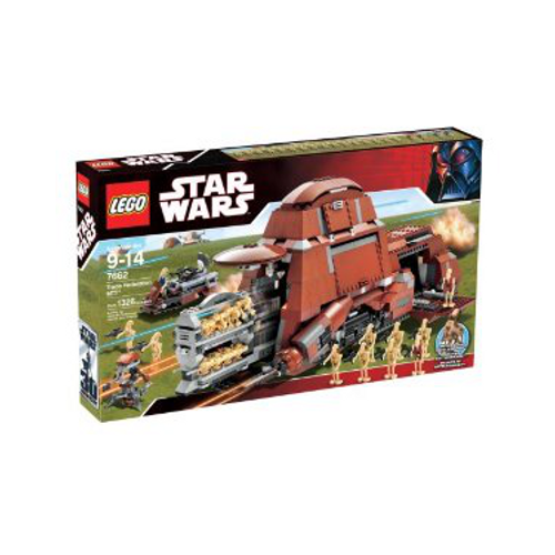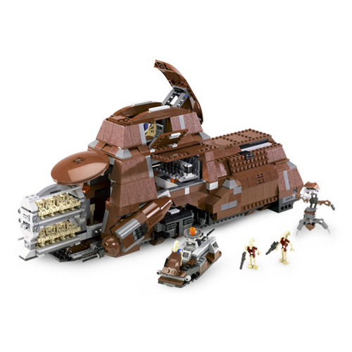 Ce set est tout simplement gigantesque aussi bien en taille qu'en nombre de minifigs! Il est composé de 2 droides pilotes, 2 droides commandants et de 16 droides de combat armés ainsi qu'un droideka. L'aspect du set est fidèle au film dans lequel il apparaît : massif, résistant et puissant. Les roues placées sous le set sont bien cachées et le rendent facilement manipulable, ça donne vraiment l'impression qu'il flotte au-dessus du sol! Le système de déploiement des droides est vraiment bien pensé (la roue dentée pour le déplier est un poil petite pour les gros doigts mais bon c'est un jouet pour enfant à la base!!). Il y a plusieurs sas où sont rangés les armes, et un petit vaisseau de commandement à distance. Bref le set est complet et trés réussi. Certains élèments se démontent assez facilement au moindre choc mais quelques ajouts de briques corrigera le tir facilement (une dizaine pour ma part) et ne nuira pas à la jouabilité. Pour faire des dioramas cet engin est vraiment bien car il a une bonne échelle et une bonne finition d'ensemble mais surtout une quantité impressionante de minifigs laissant une marge de manoeuvre trés confortable pour les mises en scène et le jeu.