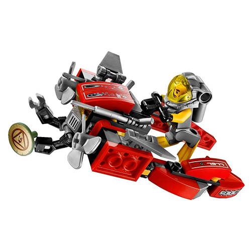 Plus jeune j'avais adoré la collection Aquazone sortie en 1995, ainsi quand la gamme Atlantis est sortie c'est tout naturellement que je m'y suis intéressé. J'ai commencé par l'achat de ce robot des profondeurs, déjà parce que le prix était relativement faible (prise de risque minimum donc) et aussi parce que j'ai tout de suite accroché sur le code couleur utilisé que je trouve bien choisi avec ce rouge dominant. Malgré sa taille modeste le set fait le boulot, l'engin est simple à monter mais offre une jouabilité respectable avec son double emploi robot/speeder. Les figurines sont réussies, surtout le gardien requin marteau. Comme toujours je déplore l'utilisation de stickers mais ceux-ci étant plutôt bien fait je ne m'en plaindrai pas plus (d'autant que pour 9.90€ on ne peut pas tout exiger). J'ai aperçu ce set en vente sur le web pour environ 36€ (août 2016) soit environ un peu plus de trois fois son prix initial. Comme toujours je vous mets donc en garde sur l'évolution des prix des boîtes qui ne sont plus commercialisées (même si chacun est libre de dépenser son argent comme il le souhaite).