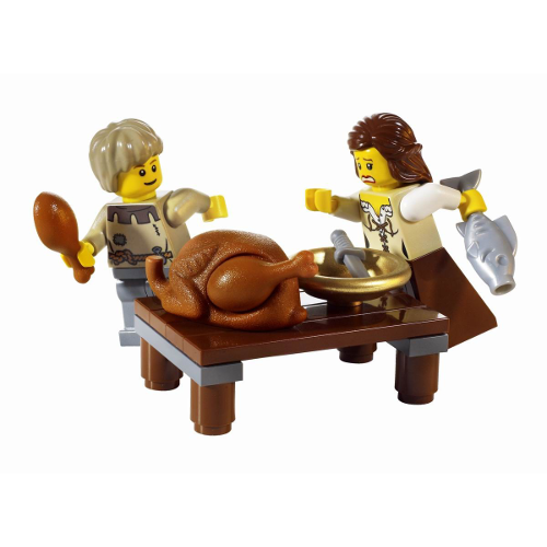 Voilà tout à fait le type de set qui montre le savoir faire de Lego en dehors des licences Star Wars ou Super Héros. Cette boîte est la bienvenue dans la gamme Castle qui contient surtout des châteaux, et des tours de magiciens en tout genre. Entre les murailles, et les scènes de bataille je dirais qu'elle est rafraîchissante. Le Roi de votre château préféré peut maintenant régner sur son peuple en plus de son armée. En dehors de ces considérations, les deux maisons et le marché sont trés riches dans beaucoup de domaines : les couleurs, les accessoires, les animaux, et les figurines. Les maisons sont d'une bonne taille et offrent une bonne jouabilité même dans les intérieurs trés détaillés. Et là vous vous dites : "Allons bon il va bien se mettre à chipoter à un moment" Et bien à vrai dire preeeesssqqquuue pas (le faux suspense!). Il n'y a pas pour être honnête de défauts particuliers mis à part deux petits points presque ridicules au final : l'arbre constitué de briques est réussi mais hélas assez fragile, personnellement j'ai du le fixer sur une plaque de base verte pour être tranquille. Le coq, le canard et la poule sont...en briques! Il faut donc les monter. Ce n'est pas grand chose je le repète, mais c'est un peu particulier dans le rendu notamment à cause des autres animaux qui sont eux moulés, voir articulés (les vaches et le cheval). Vous voyez c'était vraiment rien! En bref, nous avons là un set vraiment bien ficelé, ce n'est pas surprenant qu'il s'échange désormais à prix d'or sur le web. Souvenez vous impérativement avant de craquer que ce set ne valait que 99.90€ lors de sa commercialisation (oui en plus d'être top il n'était pas du tout excessif en tarif). Il n'est malheureusement pas rare de le trouver le double de son prix actuellement (janvier 2016). Une excellente boîte certe, mais à ce tarif l'est-elle encore? A chacun de voir!
