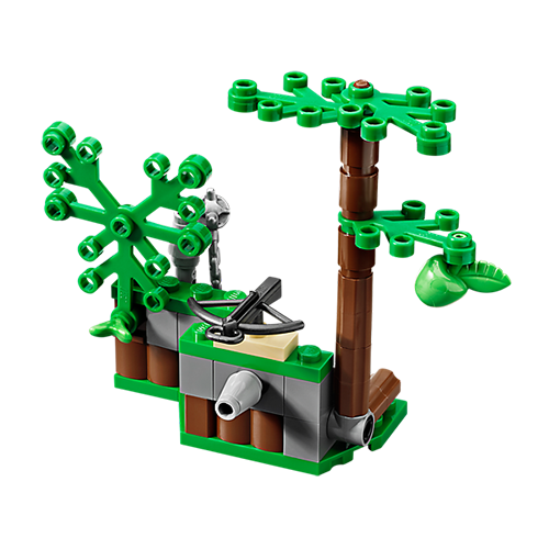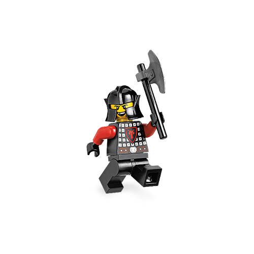 Voilà tout à fait le type de boîte que j'affectionne et que l'on retrouve régulièrement dans le catalogue Lego : quelques minifigurines, des accessoires et un élément de décor pour un tarif raisonnable (propos à nuancer selon les gammes...). Voyons maintenant de plus près ce que nous avons ici : tout d'abord la cachette des bandits. Elle est composée d'un tronc qui bascule pour tendre une embuscade aux soldats du roi, d'un emplacement pour flick missile et de rangements pour les armes. Hélas, étant donné le peu de pièces utilisées pour le camouflage il faut faire un (gros) effort d'imagination pour penser être dans une forêt et que les soldats du roi ne verront pas leurs ennemis trois kilométres avant. Néanmoins, on pardonnera tous cette faiblesse à ce set assez facilement. Déjà parce que lors de sa sortie son prix était de 9.99€, ensuite parce qu'il contient quatre figurines réussies (surtout les méchants), pas mal d'armes et d'accessoires en tout genre (notamment un trésor plein de pièces et de joyaux) et qu'en prime on trouve dans ce set un chien qui n'est pas trés courant dans la gamme Castle. En bref, voici un set qui pour sa taille propose du contenu, de la jouabilité et un excellent rapport qualité/prix. Personnellement, je regrette de ne pas avoir acheté plusieurs boîtes de ce modèle car il permettait de monter rapidement une armée de soldats. Au 8 mai 2016, il est encore possible de trouver cette boîte à des tarifs raisonnables, attention cependant aux frais de port qui font vite exploser le rapport qualité/prix, par exemple : trouver la boîte au prix d'origine avec presque 12€ de livraison...