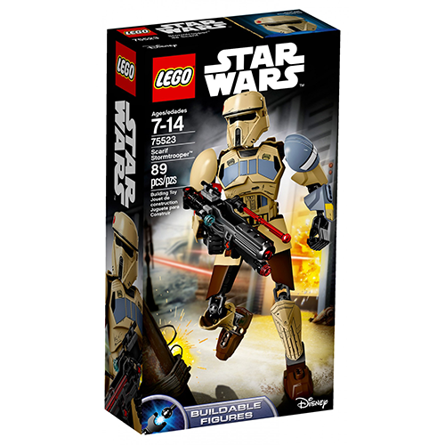 L'armée impériale comporte de nombreuses troupes spécialisées pour la réalisation de missions dans des conditions spécifiques. C'est ainsi que sur la planète Scarif principalement recouverte de mers et d'îles, on retrouve des Shoretroppers dont l'armure légère est spécialement conçue pour la défense des zones côtières. Le set 75523 Scarif Stormtroopers est une version "Buildable figures" de ce type de soldats mesurant un peu plus de 24 cm de haut.