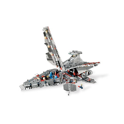 Et paf! Encore un beau croiseur pour les collectionneurs! Parmi les sets Clones Wars si il y en avait bien un que j'attendais c'était celui là! Je dois dire que je ne suis pas déçu d'une manière générale : des détails et des fonctionnalités à foison, des minifigs exclusives, un vaisseau à l'échelle des figurines... Concernant les détails le plus sympathique à mes yeux est la présence du symbole d'Amidala (le Cercle Ouvert) sur le navire, l'accessoire du Chancelier Palpatine représentant les plans de l'Etoile Noire est tout simplement culte! Du côté des fonctionnalités il n'y a pas à se plaindre, l'avant du vaisseau se soulève et laisse apparaître le bureau du Chancelier accompagné de deux commandos du Sénat (exclusif à cette boîte), sous le cockpit se cache une tourelle de canons à l'échelle d'une minifig (l'artilleur est inclus). Juste devant cette tourelle se situe un système de largage de missiles assez délicat à manier....ah....oui...nous y voilà donc pour les défauts. Bon commençons par l'habituel manque de minifigs : le Chancelier Palpatine, 2 commandos du Sénat, 1 pilote Clone et 1 artilleur. Pour un vaisseau qui peut embarquer plus de 7000 hommes c'est un peu léger je trouve, mais c'est hélas trés récurrent dans les sets Lego. Ceci étant dit ce n'est pas le plus gros soucis. Je reproche principalement à ce vaisseau d'être fragile et peu maniable. La tourelle de canons montée sur rails glisse laborieusement, le système de largage de missiles est difficile à faire fonctionner et bouge trop facilement, et des pièces se détache très facilement lorsque l'on manipule le vaisseau. En bref, il faudra renforcer certains éléments discrétement pour pouvoir jouer avec et cela vaut aussi si vous le laissez sur une étagère (et oui il faut parfois dépoussiérer et donc déplacer!). Cela reste malgré tout un beau set agréable à monter, à exposer ou tout simplement pour jouer!
