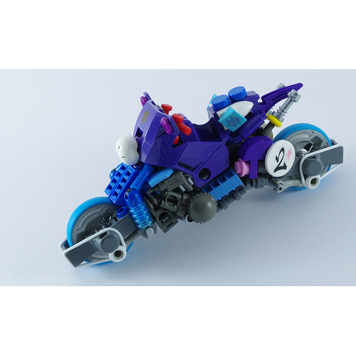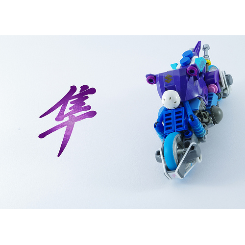 Fan de moto et de Lego, je ne pouvais pas passer à côté de ce Moc fait par Zombrick en mai 2013. Le choix des couleurs est osé mais reste harmonieux. Les pièces choisies sont franchement décalées : une perceuse et des jumelles en guise d'élèments de moteur, des poignées de sabre laser en pots d'échappement, le mieux reste le casque de skater en guise de phare. Voici du beau travail comme on aime sur Have A Brick! Je remercie Zombrick pour sa collaboration, voici le lien vers sa page Flickr si vous voulez voir d'autres de ses modèles tout aussi excellents : Galérie de Zombrick